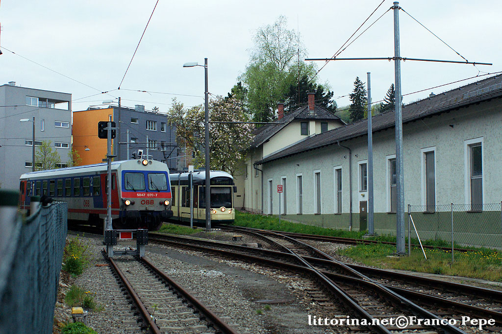 OBB 5047 070-7 + LINZ AG Linier – tram 502 – Linz Mühlkreisbahnhof (A) – 23 aprile 2015