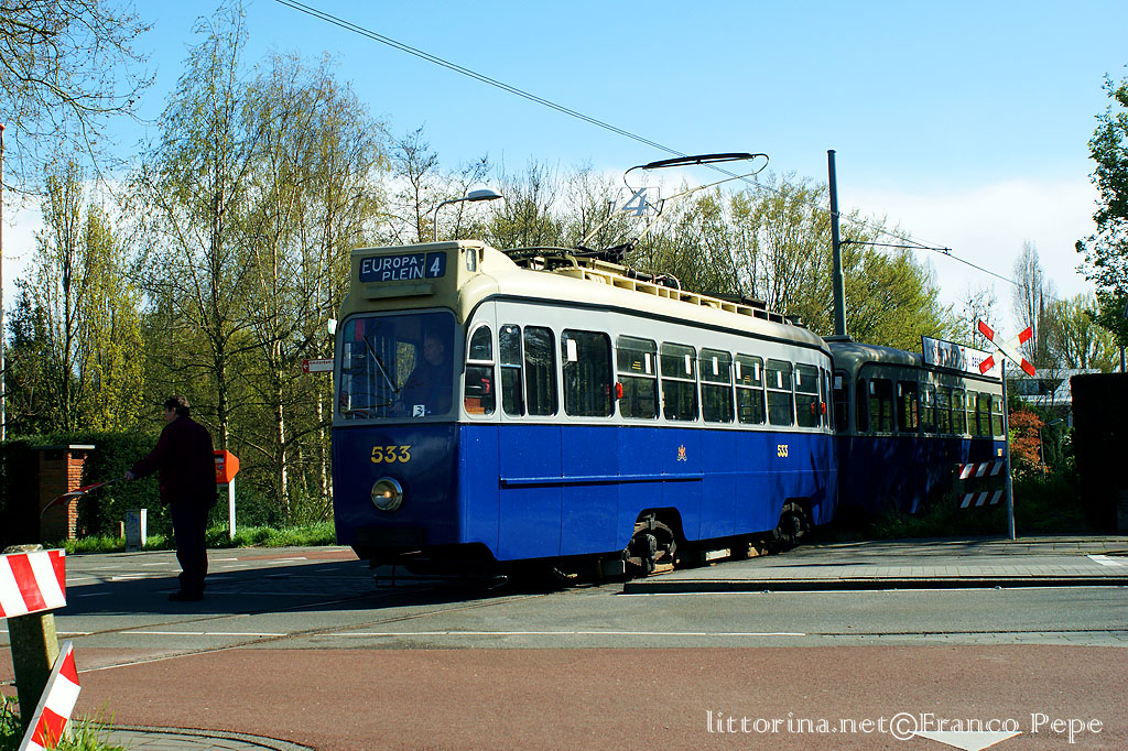 GVB – tram storico CFP 533 + rimorchio CFP 987 (ex Amsterdam) – Koenenkade – Amsterdam (NL) – 24 aprile 2016