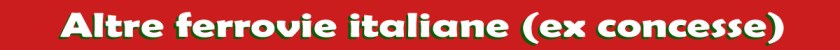 Altre ferrovie italiane (ex concesse) EAV Ferrovia Alifana Ferrovia Valle Caudina FAS Ferrovia Sangritana FER ACT – ATCM FBP – FCV – FPFPS – FSF Ferrovia Marmifera di Lasa FNM – TrenordLinea Brescia – Edolo FETMFerrovia Elettrica Trento – Mezzana GTT-SATTILineaSettimo Torinese Pont Canavese TFT -LFILinea Arezzo – Sinalunga SADLinea Merano – Malles (anche FS) FAM – STLinea Adria – Mestre FCU Ferrovia Centrale Umbra FGC Ferrovia Genova – Casella ATACFerrovia Roma – Giardinetti FNM – TrenordMilano – AssoMilano – NovaraMilano – LavenoMilano – Como FUC Ferrovia Udine – Cividale GTT-FTNLinea Torino – Ceres SAD – FEARFerrovia del Renon SSIF-FARTFerrovia Valvigezzo