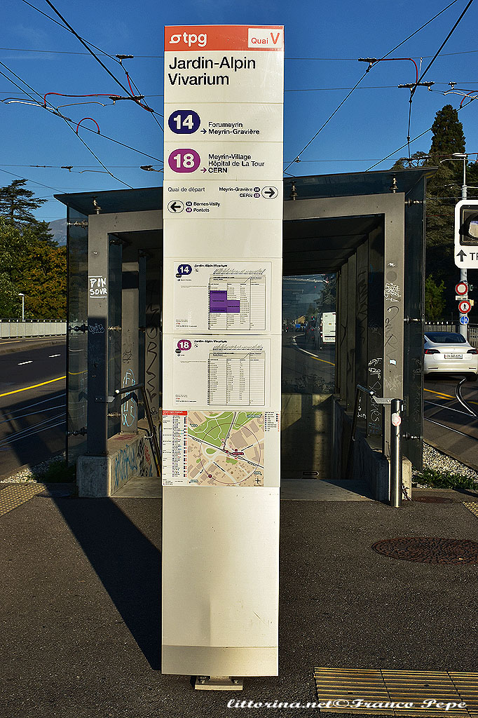 TPG – fermata Jardin-Alpin Vivarium – totem con indicazioni – Genève (CH) – 7 settembre 2021