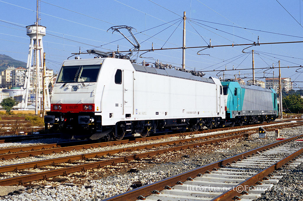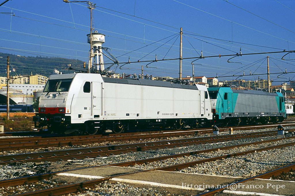 E 186.901 + Angel Train E 483.009 corsa prova comando multiplo – Savona Piazza Doria – 16 ottobre 2007